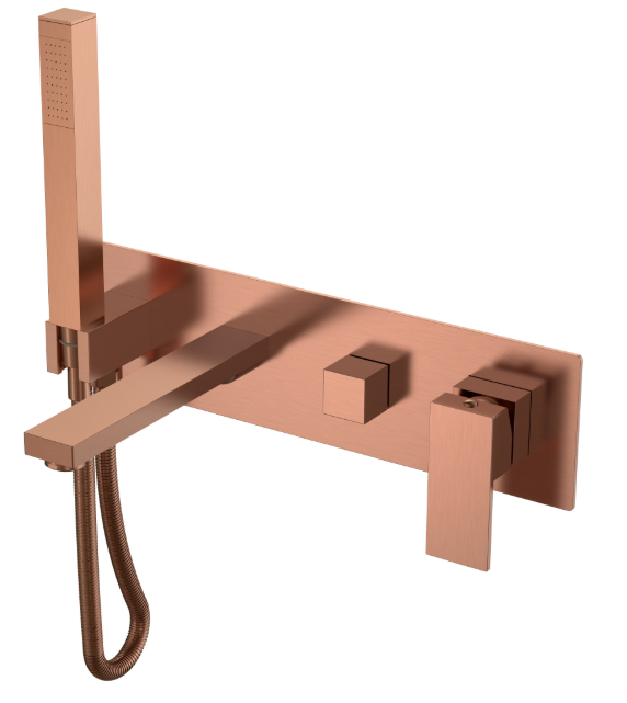 Смеситель для ванны Boheme Qubic 474-2-CB, скрытая часть в комплекте, материал латунь, цвет брашированная медь.