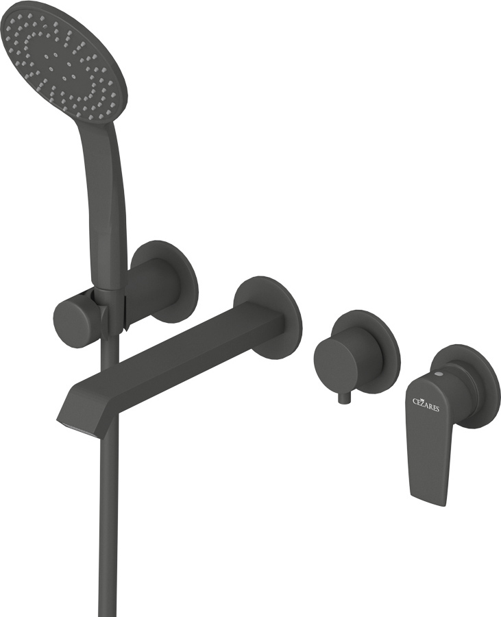 Смеситель для ванны Cezares NAUTIC-VDM3-NOP со скрытой частью и душевым гарнитуром, материал латунь, цвет чёрный матовый.