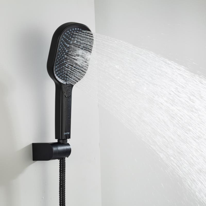 Смеситель для ванны с выдвижным изливом Gappo G10-6 G3210-6 с душевым гарнитуром, материал латунь, цвет чёрный.
