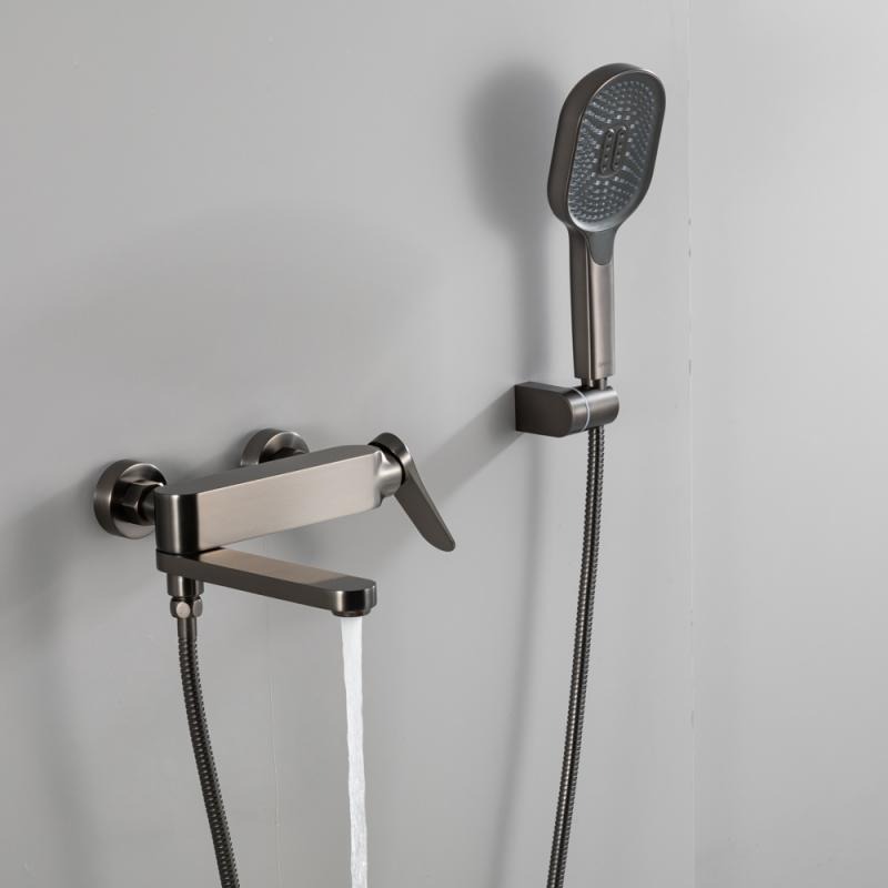 Смеситель для ванны с выдвижным изливом Gappo G10-9 G3210-9 с душевым гарнитуром, материал латунь, цвет оружейная сталь.
