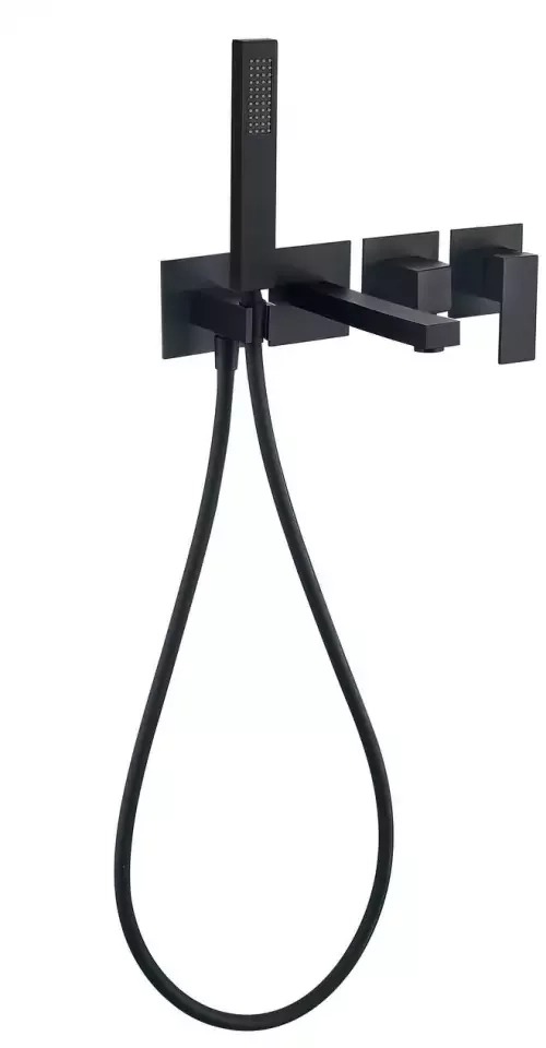 Смеситель для ванны Grocenberg GB5060BL с керамическим картриджем Kerox (Венгрия) и душевым гарнитуром, материал латунь, цвет чёрный матовый.