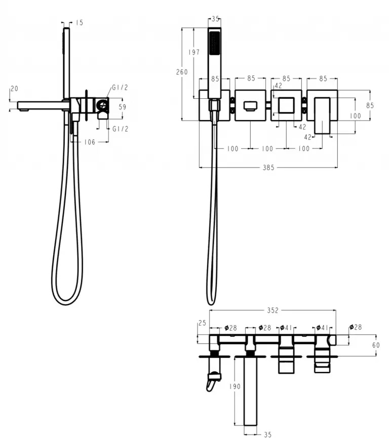 смеситель для ванны с гарнитуром