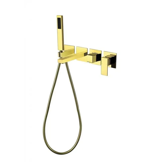 Смеситель для ванны Grocenberg GB5060GO с керамическим картриджем Kerox (Венгрия) и душевым гарнитуром, материал латунь, цвет золото.