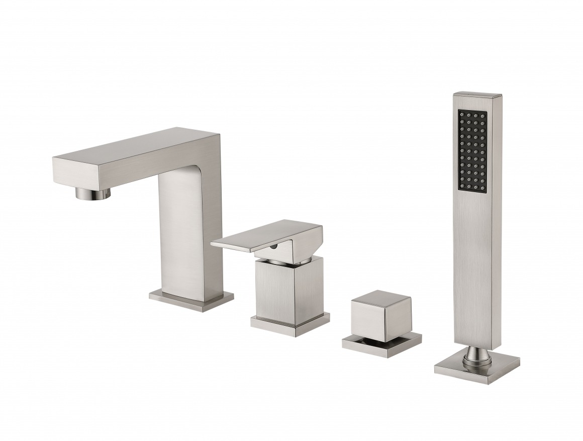 Смеситель для ванны Groсenberg GB6008-1NK, с выдвижным душем, на четыре отверстия, материал латунь, цвет никель.