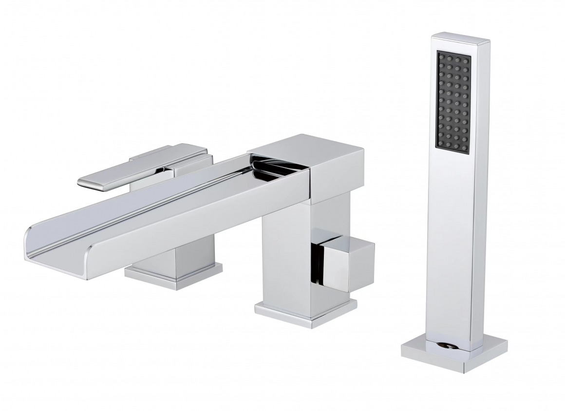Смеситель для ванны Groсenberg GB6008-2CR, с выдвижным душем, на три отверстия, материал латунь, цвет хром.