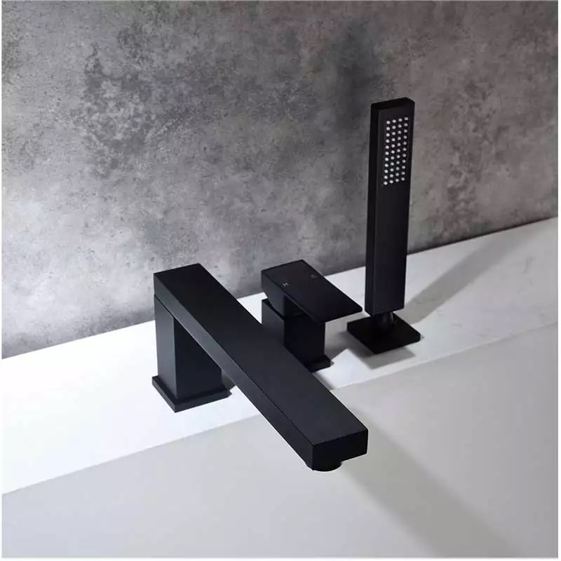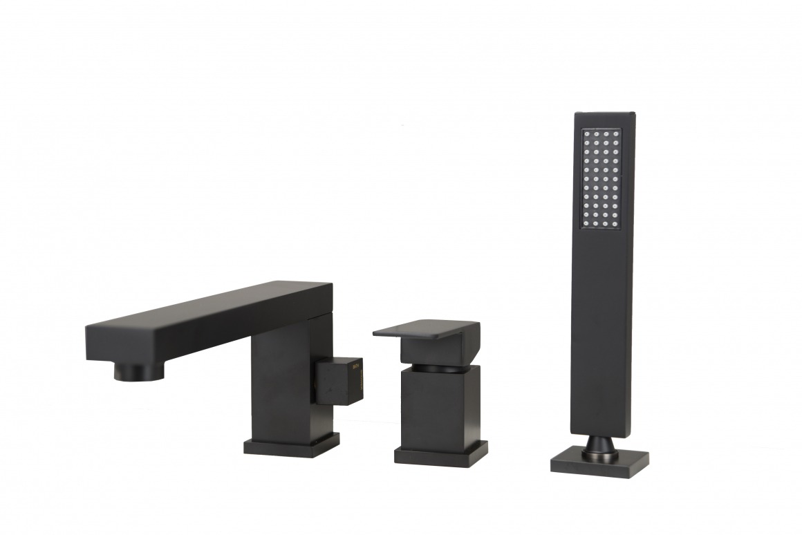 Смеситель для ванны Groсenberg GB6008BL, с выдвижным душем, на три отверстия, материал латунь, цвет чёрный матовый.