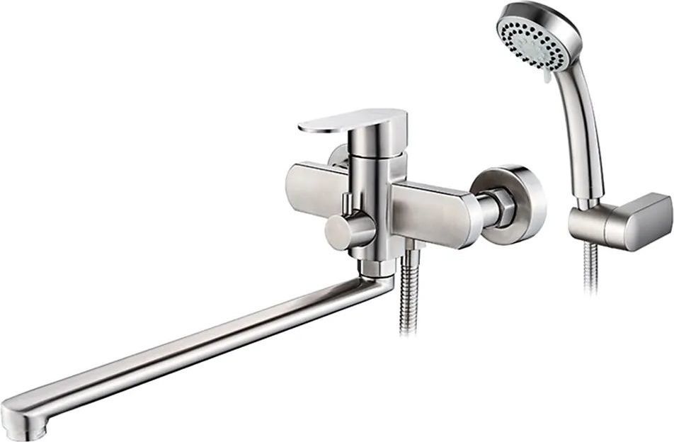 Смеситель для ванны Ledeme L72216 с душевым гарнитуром и длинным изливом, материал нержавеющая сталь, цвет нержавеющая сталь.