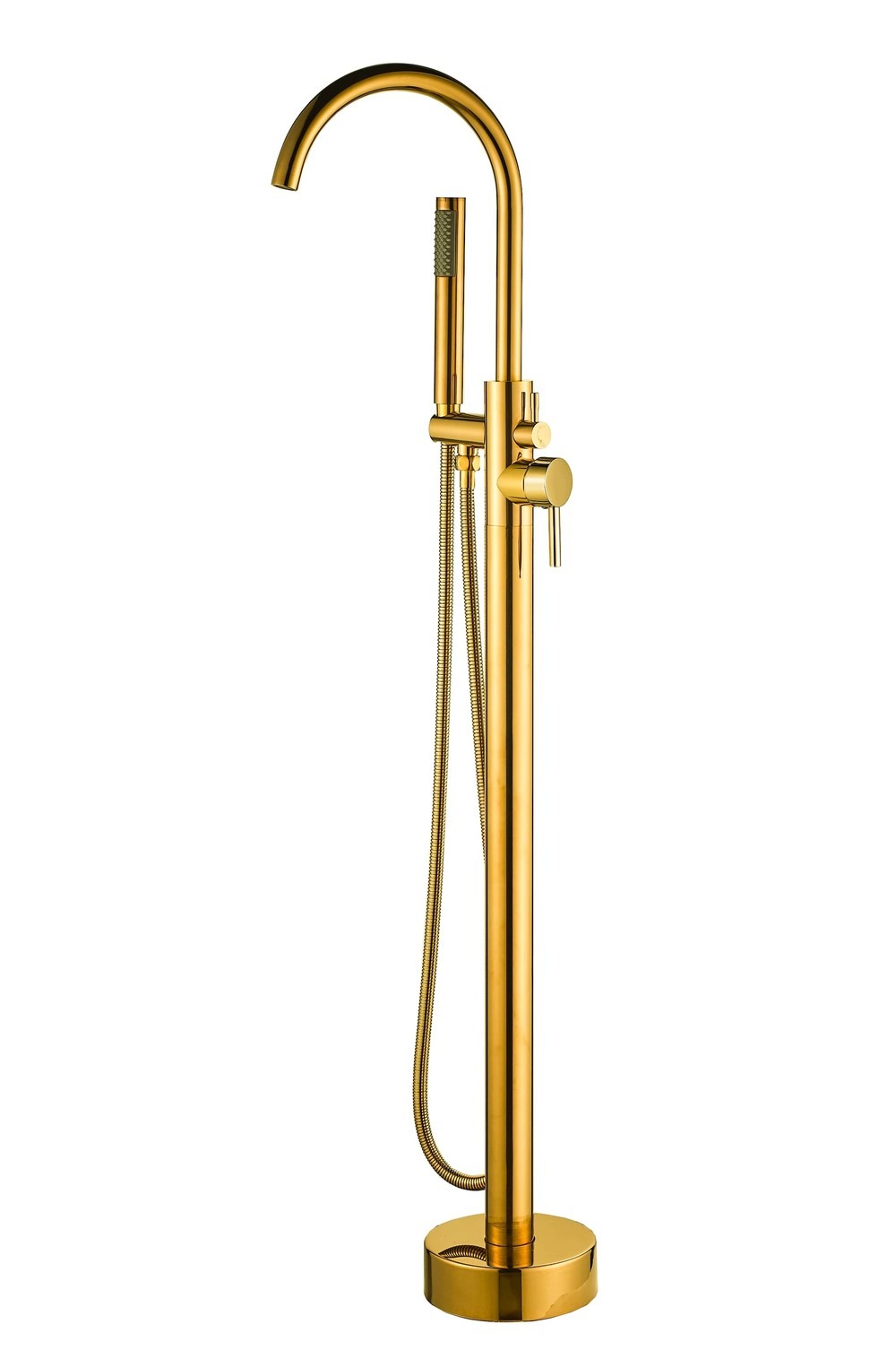 Смеситель для ванны напольный EvaGold Antares EG400072 с душевым гарнитуром, материал латунь, цвет золото.