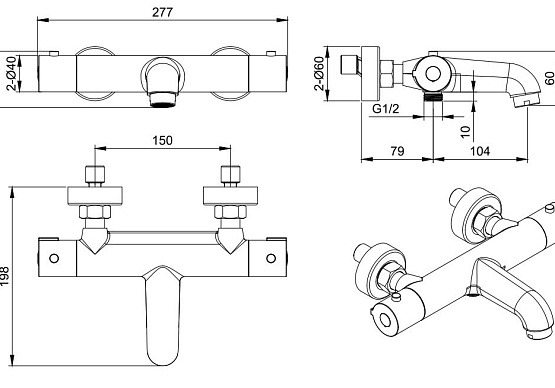 Смеситель для ванны с термостатом Aquatek Вега AQ1043BGM, материал латунь, цвет оружейная сталь. Душевой гарнитур в комплект не входит и приобретается отдельно.
