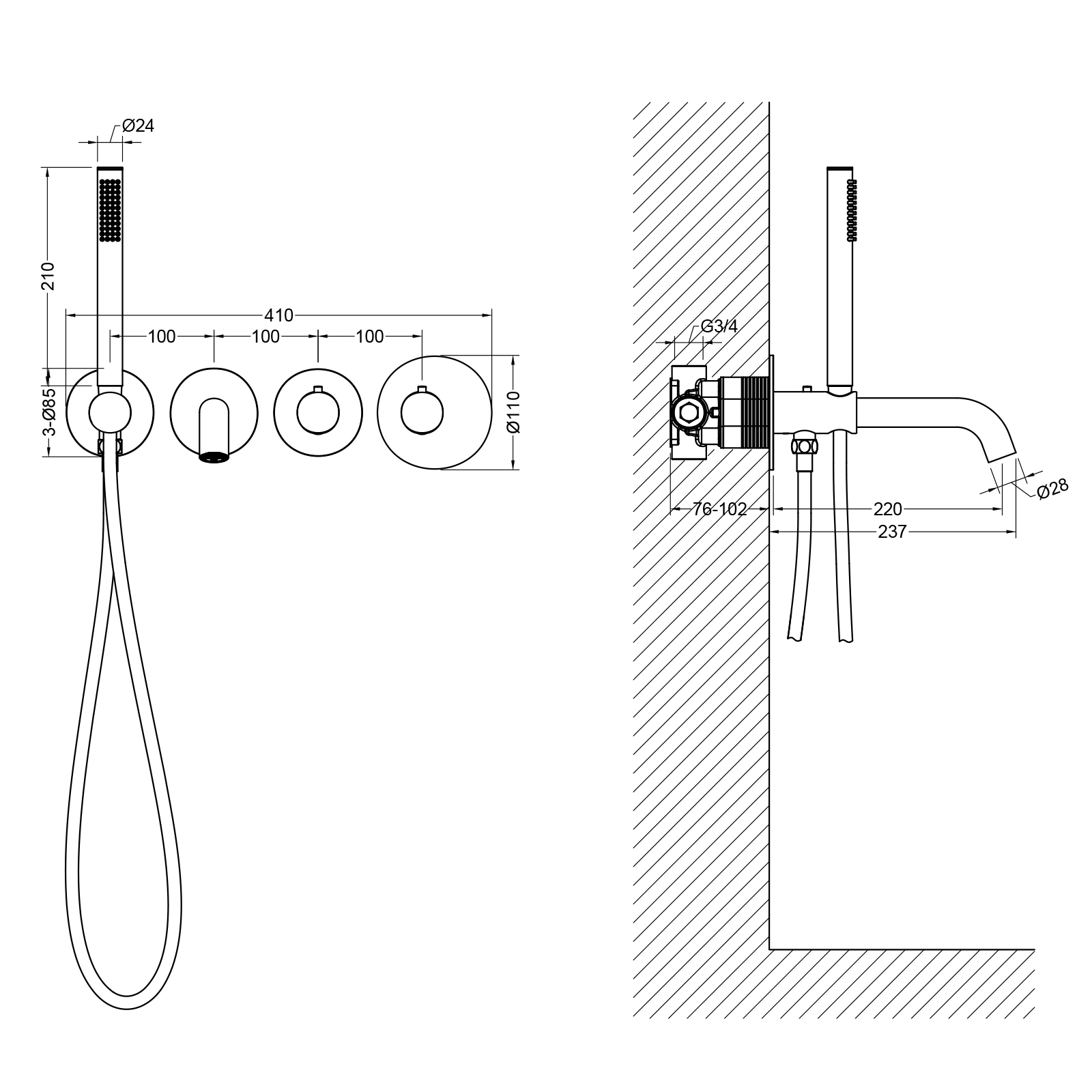смеситель для ванны с гарнитуром