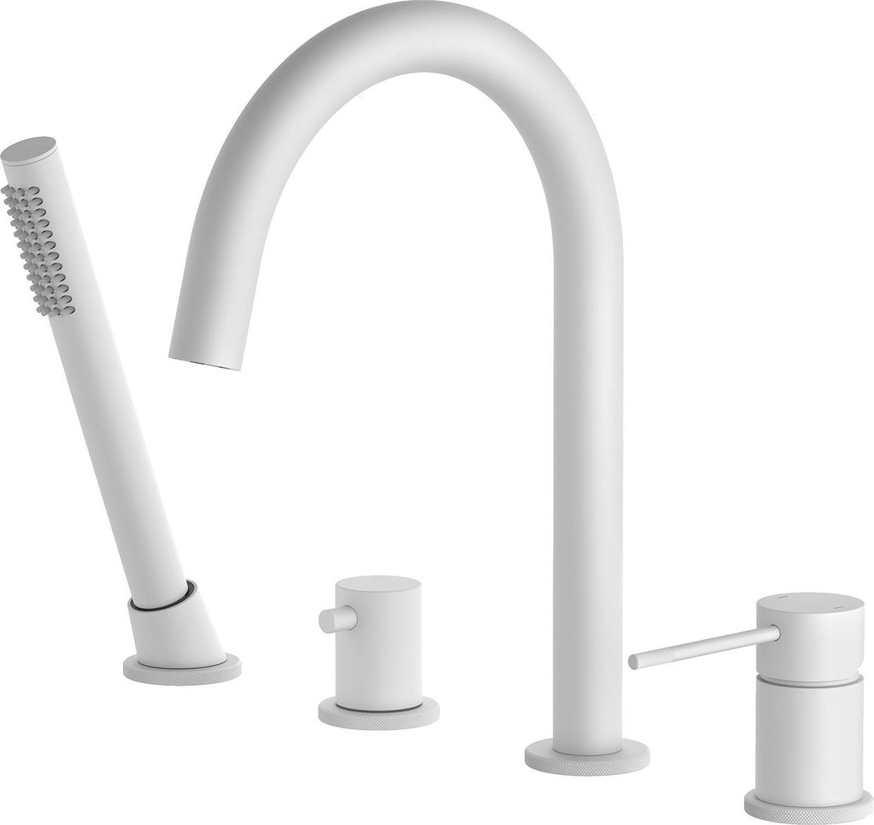 Смеситель для ванны Timo Saona 2320/16Y, на 4 отверстия, с душевым гарнитуром, материал - латунь, цвет - белый матовый.