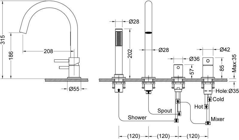 Характеристики смеситель на борт ванны Timo (2320/16Y)