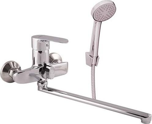 Смеситель для ванны Zerix BAX-A152 с длинным изливом и душевым гарнитуром, материал силумин, цвет хром.