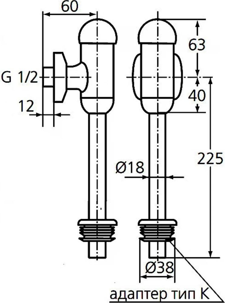 Смывное устройство для писсуара Ideal Standard B7120AA, 1/2", без регулировки, для верхней подводки, с резиновым адаптером и розеткой, материал - латунь, цвет - хром.