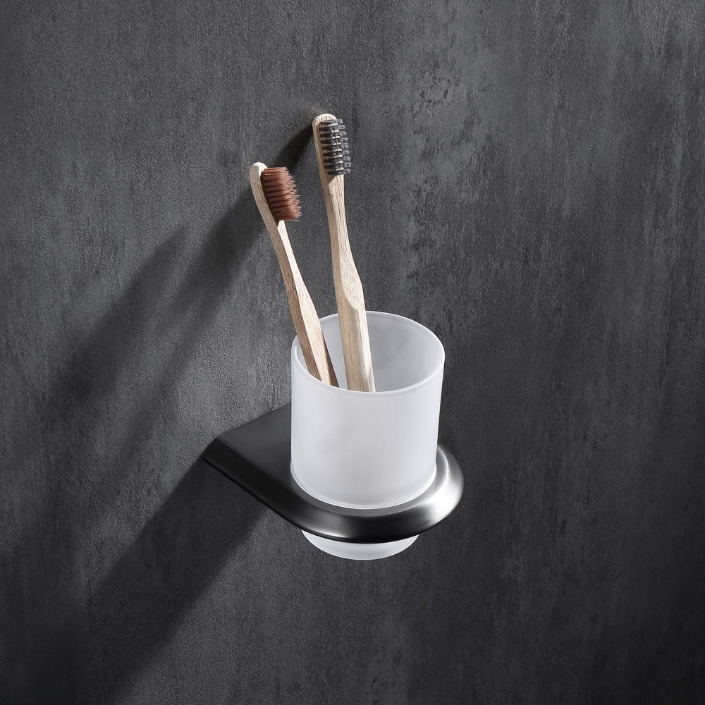 Стакан для зубных щеток Abber Nord AA1556NG с настенным держателем, материал нержавеющая сталь/стекло, цвет никель.