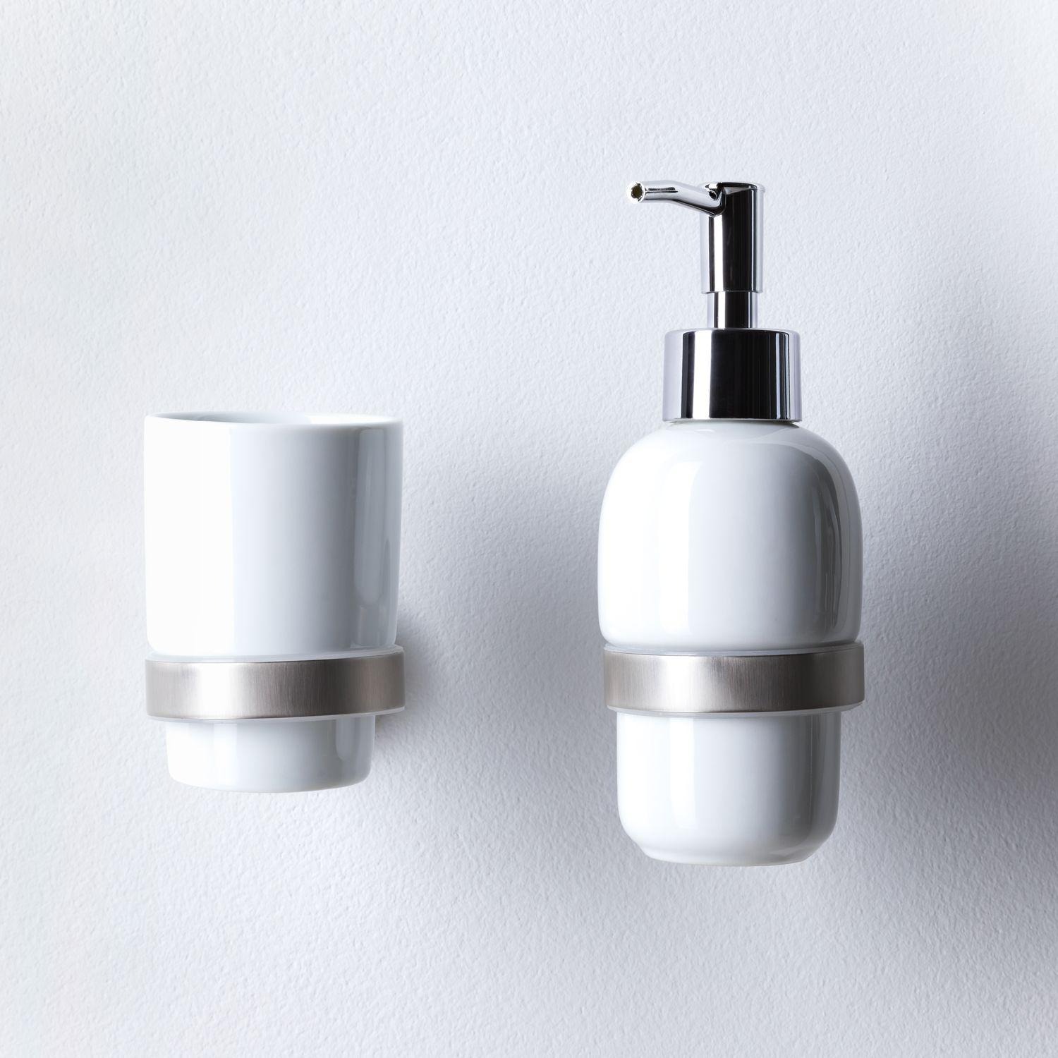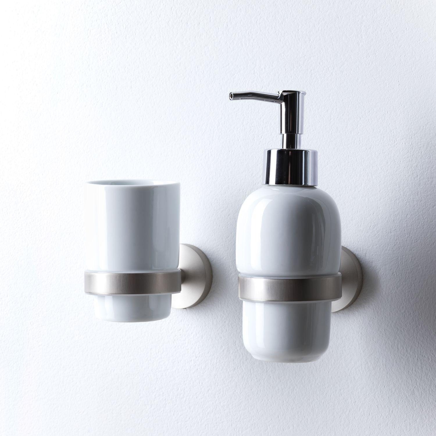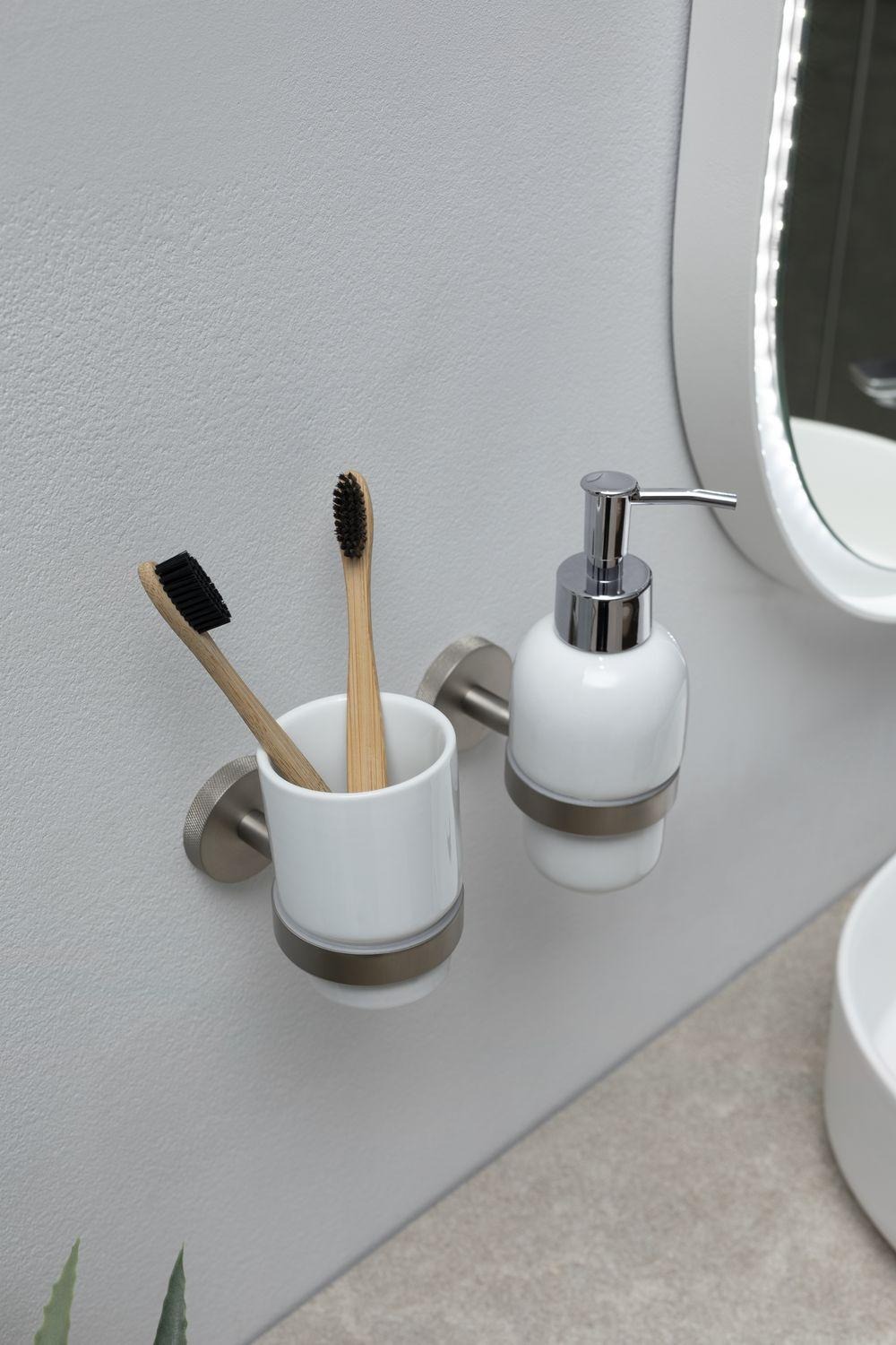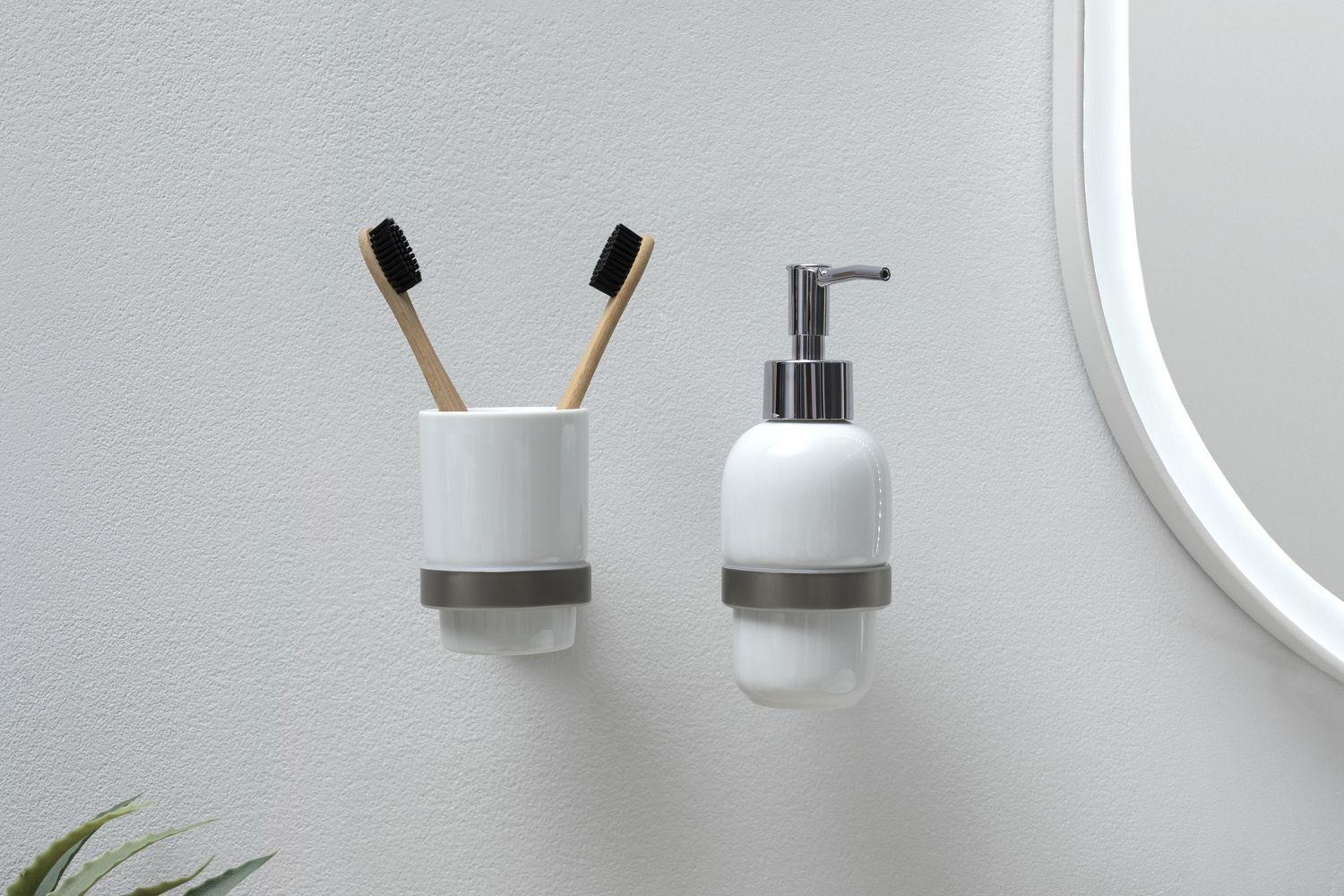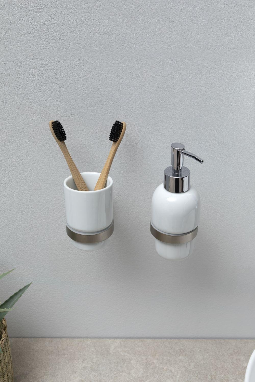 Стакан для зубных щеток Allen Brau Priority 6.31002-BN, цвет белый/никель браш - фото