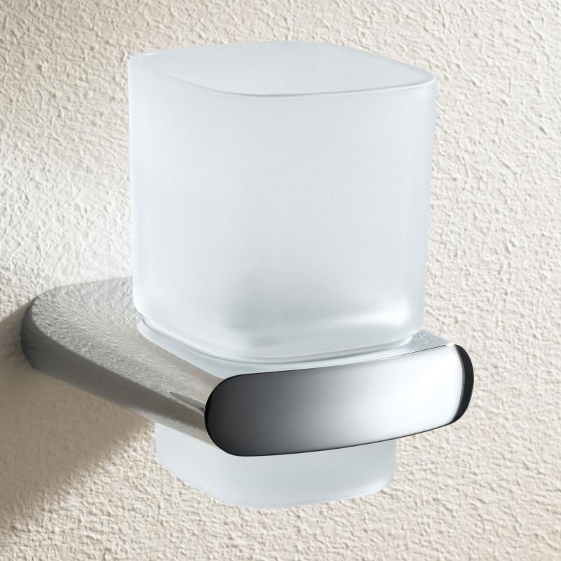 Стакан для зубных щеток Keuco Elegance с настенным держателем, материал латунь/стекло, цвет хром.