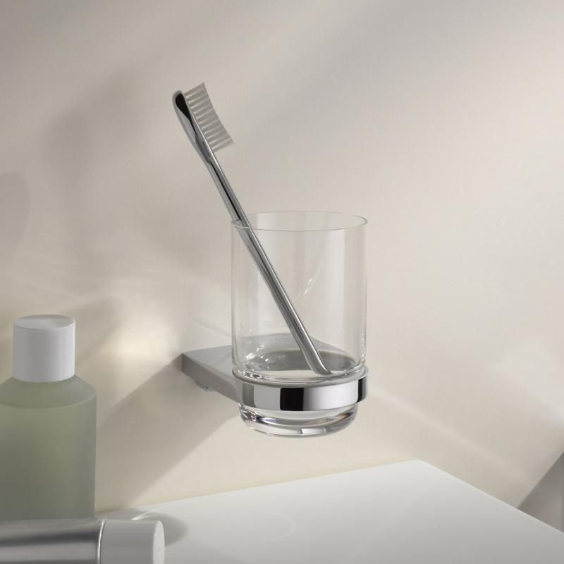 Стакан для зубных щеток Keuco Moll с настенным держателем, материал латунь/стекло, цвет хром.