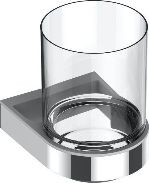 Стакан для зубных щеток Keuco Smart с настенным держателем, материал латунь/стекло, цвет хром.