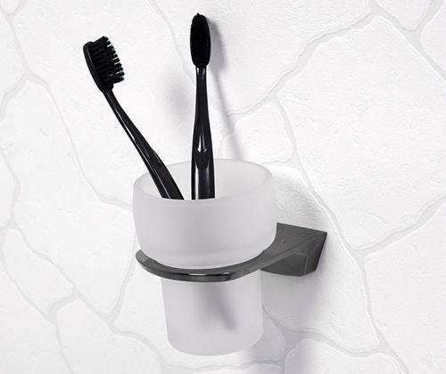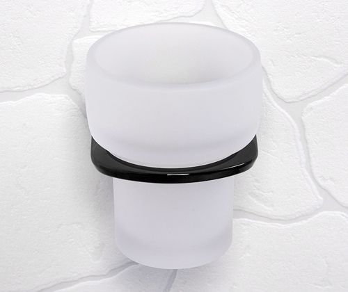 Стакан для зубных щеток WasserKraft Glan K-5128 с настенным держателем, материал металл/стекло матовое, цвет чёрный.