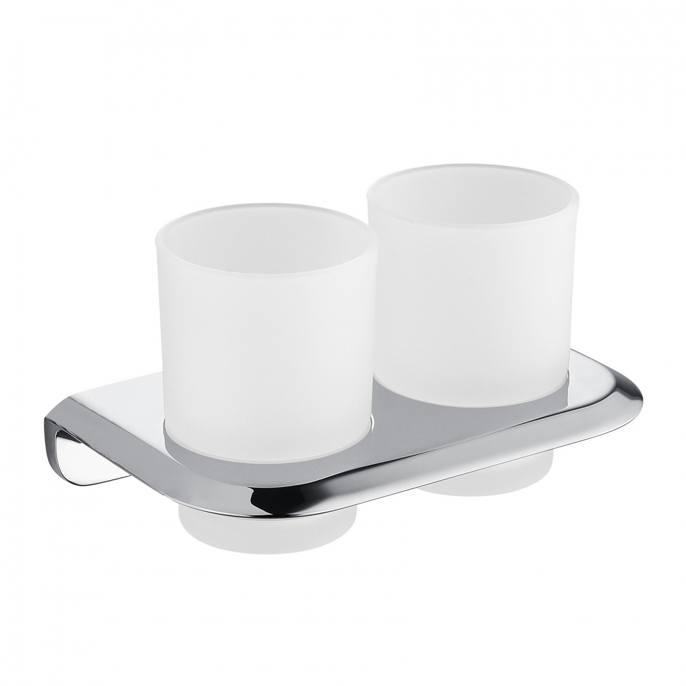 Стакан двойной для зубных щеток Abber Nord AA1557, с настенным держателем, материал нержавеющая сталь/стекло, цвет хром.