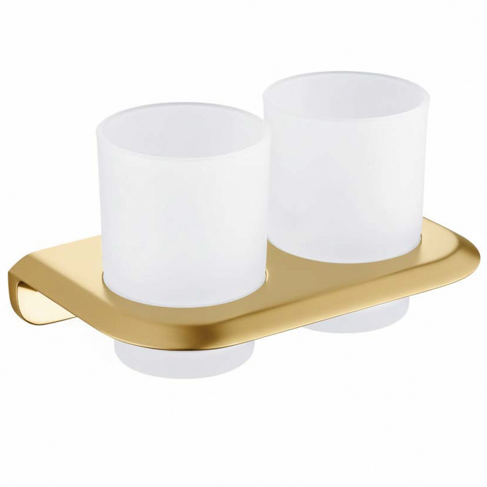 Стакан двойной для зубных щеток Abber Nord AA1557G, с настенным держателем, материал нержавеющая сталь/стекло, цвет золото матовое.