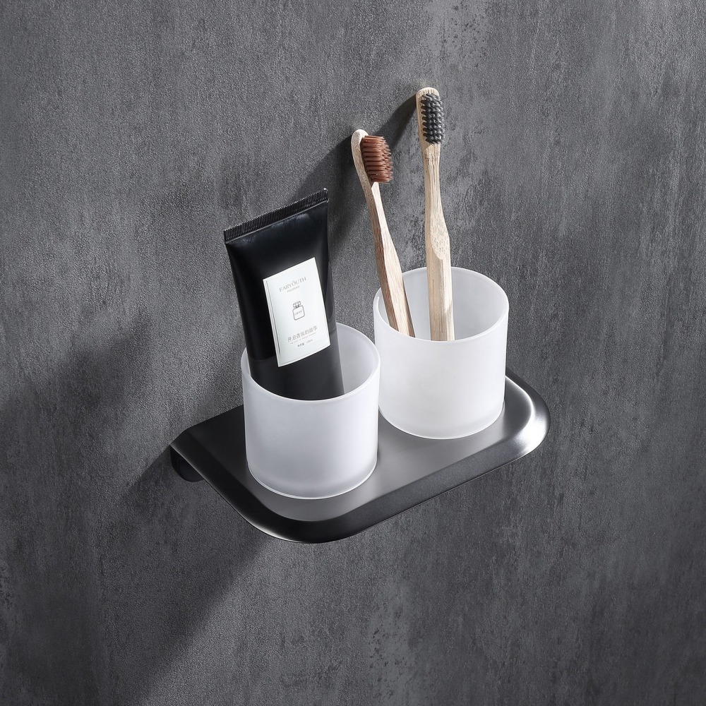 Стакан двойной для зубных щеток Abber Nord AA1557NG, с настенным держателем, материал нержавеющая сталь/стекло, цвет никель.