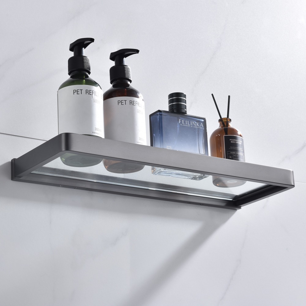 Стеклянная полка Abber Westen AA1759NG, длина 40 см, материал нержавеющая сталь/стекло, цвет никель.