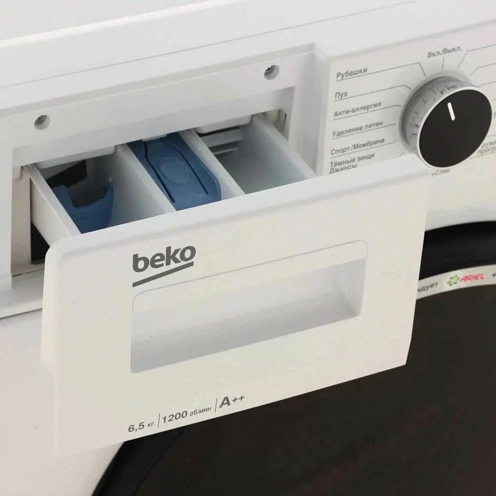 Узкая стиральная машина Beko с инверторным мотором ProSmart, долговечным нагревателем Hi-Tech с защитой от накипи и технологией обработки паром SteamCure. Максимальная загрузка барабана составляет 6,5 кг, электронный контроль дисбаланса равномерно распределяет все внутри, снижая уровень шума и вибрации стиральной машинки во время стирки и отжима. 15 программ стирки включают специализированные режимы для разных типов ткани и одежды, например, шерсти, спортивной одежды и пуховиков, а также гипоаллергенную и быструю стирку за 14 минут.