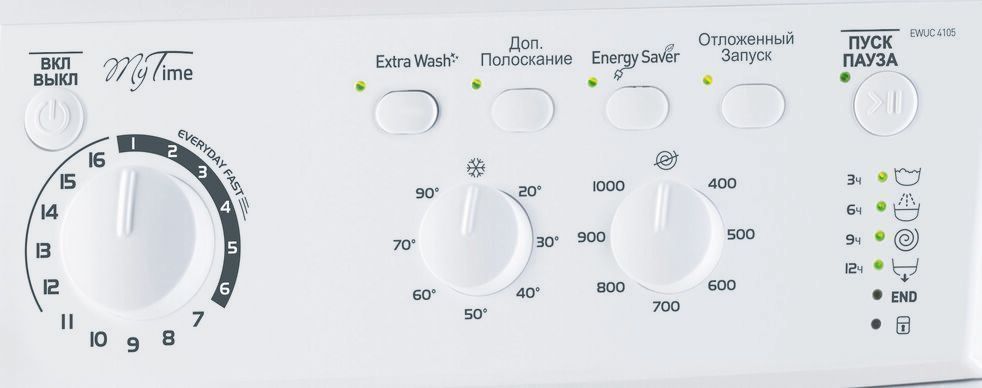 • Техника Indesit EWUC 4105 CIS дополнена системой автовзвешивания и отсрочкой запуска на 12 ч, программами дополнительного полоскания и энергосбережения. Дизайн машинки допускает установку под столешницу. Для управления используются простые кнопки и поворотные рычаги.