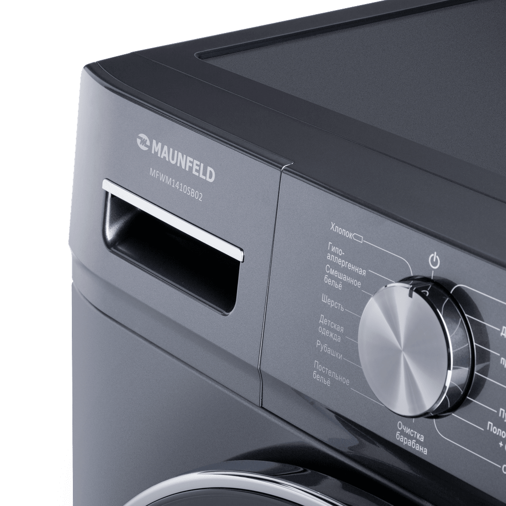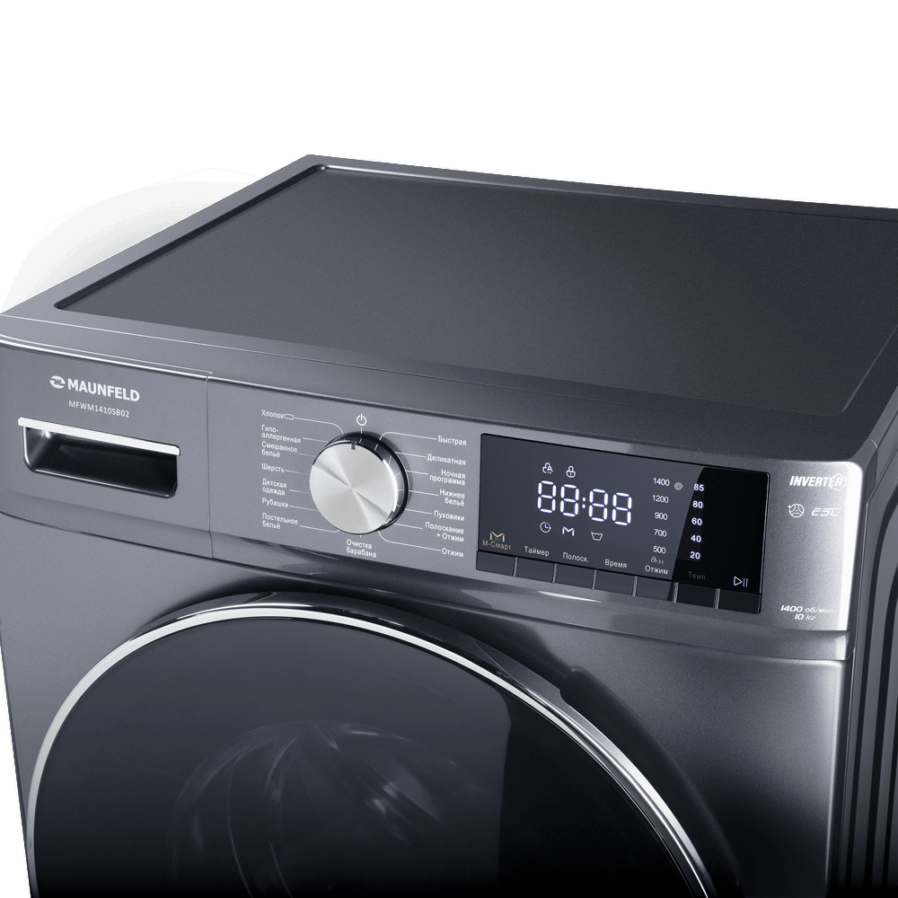 Стиральная машина Maunfeld MFWM1410SB02. Цвет чёрная нержавеющая сталь.