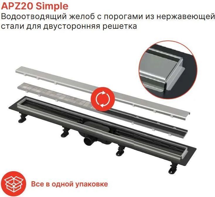 Трап Alcadrain 85 см APZ20-850 с порогами из нержавеющей стали для перфорированной решетки или решетки под кладку плитки.