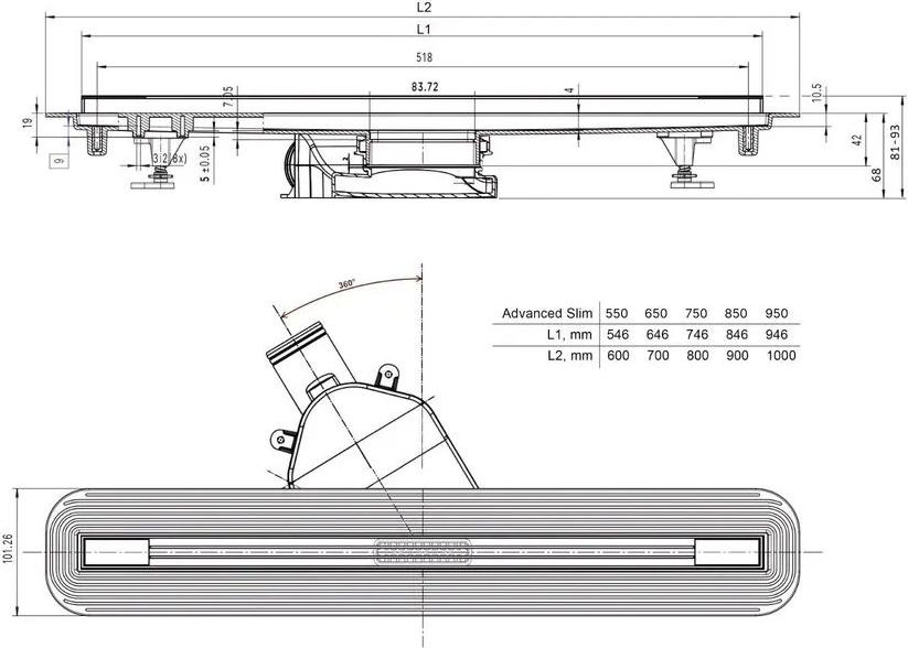 Трап Bettoserb Advanced Slim 950 13600036, длина 950 мм, цвет нержавеющая сталь.