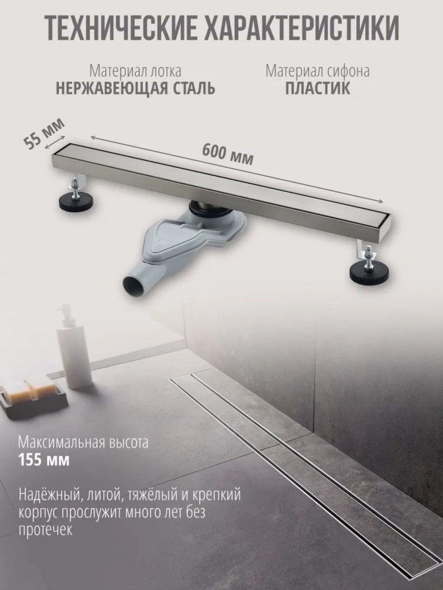 - Ширина душевого канала: 55 мм