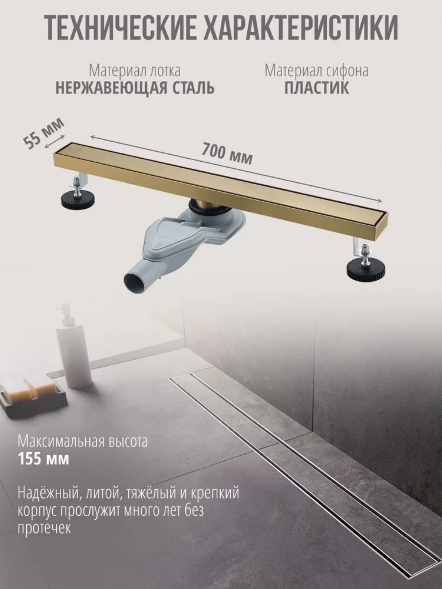 Трап Grocenberg 70 см T700MG, матовое золото (под плитку) - фото