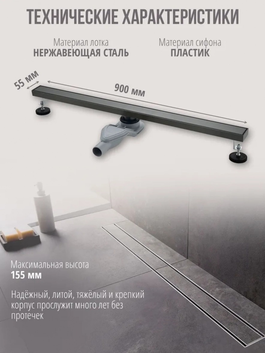 - Длина душевого канала 900 мм