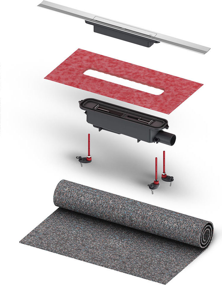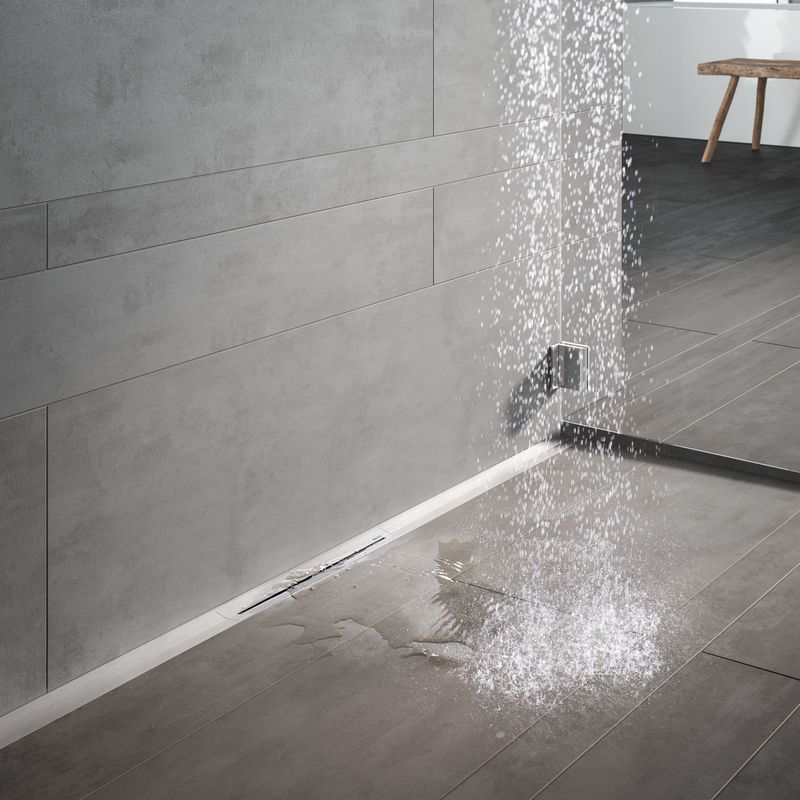 - Душевой профиль, который можно обрезать по длине, выполненный из нержавеющей стали, с уклоном к центру для улучшения слива воды и самоочищения, материал 1.4301 (304)