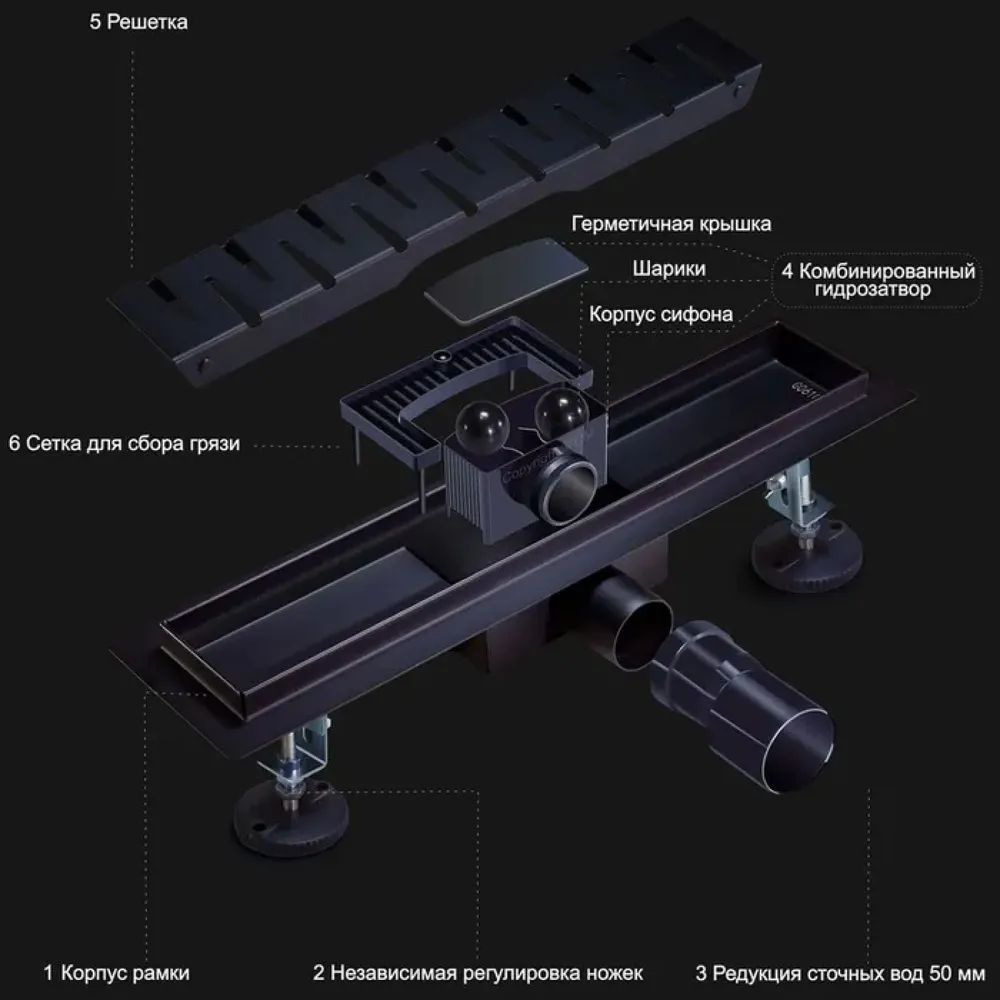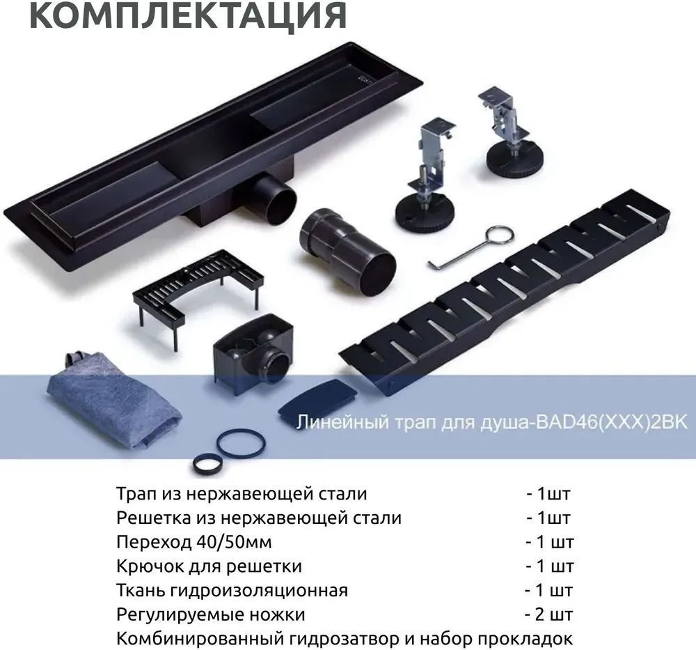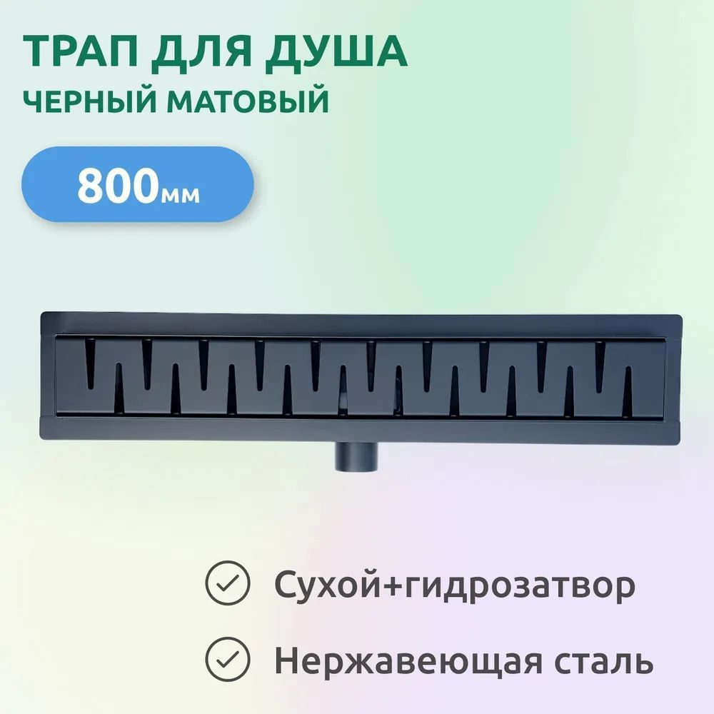 Трап TIM 80 см BAD468002BK, материал нержавеющая сталь, цвет чёрный матовый.