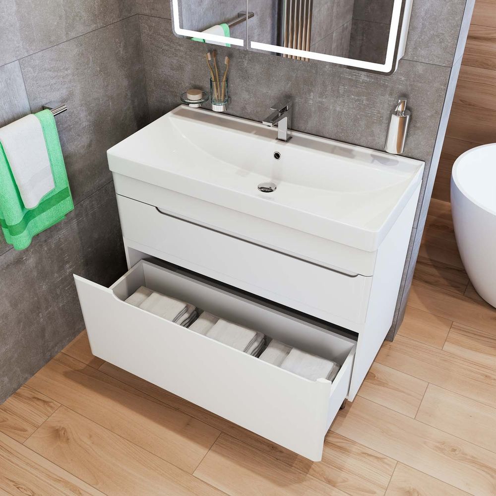Тумба напольная с раковиной Mirsant Flat 60/2 60 см c раковиной Line 60, цвет белый.