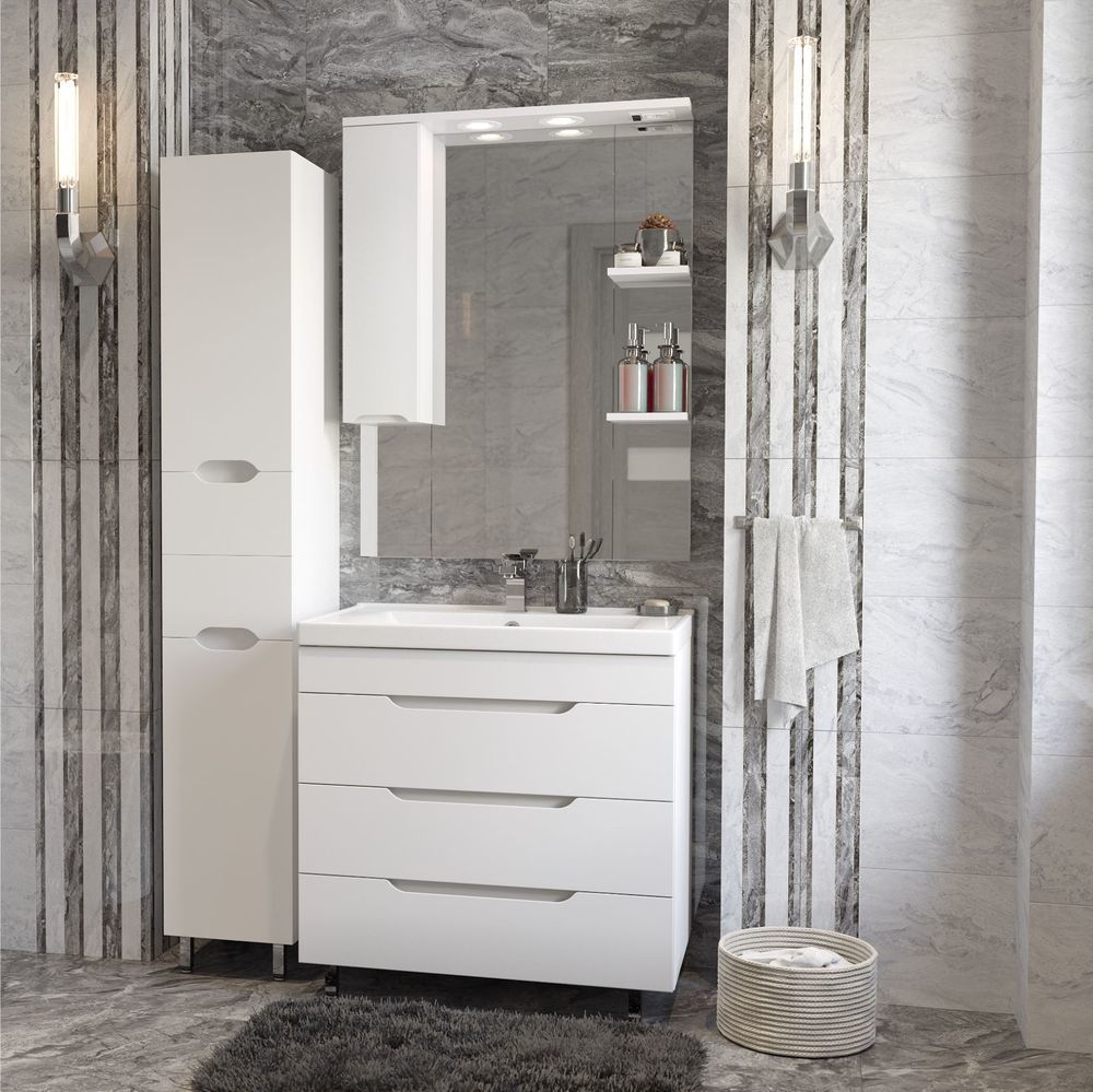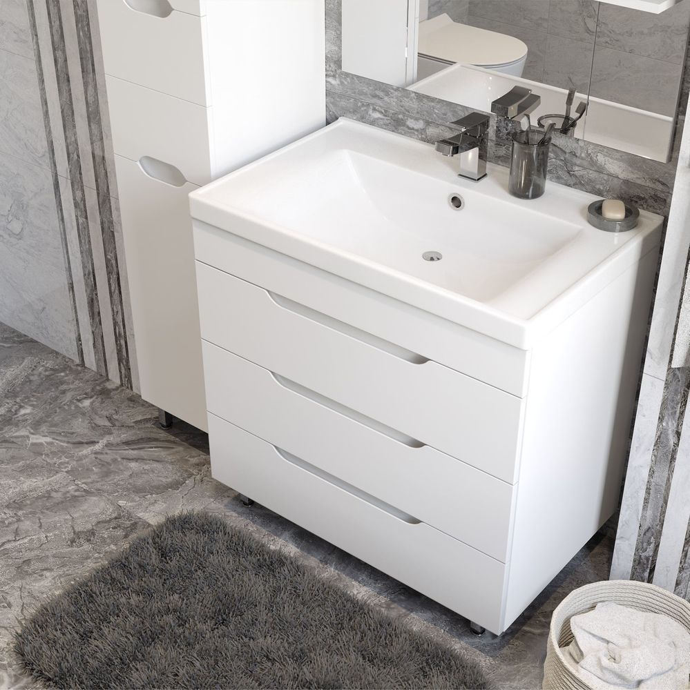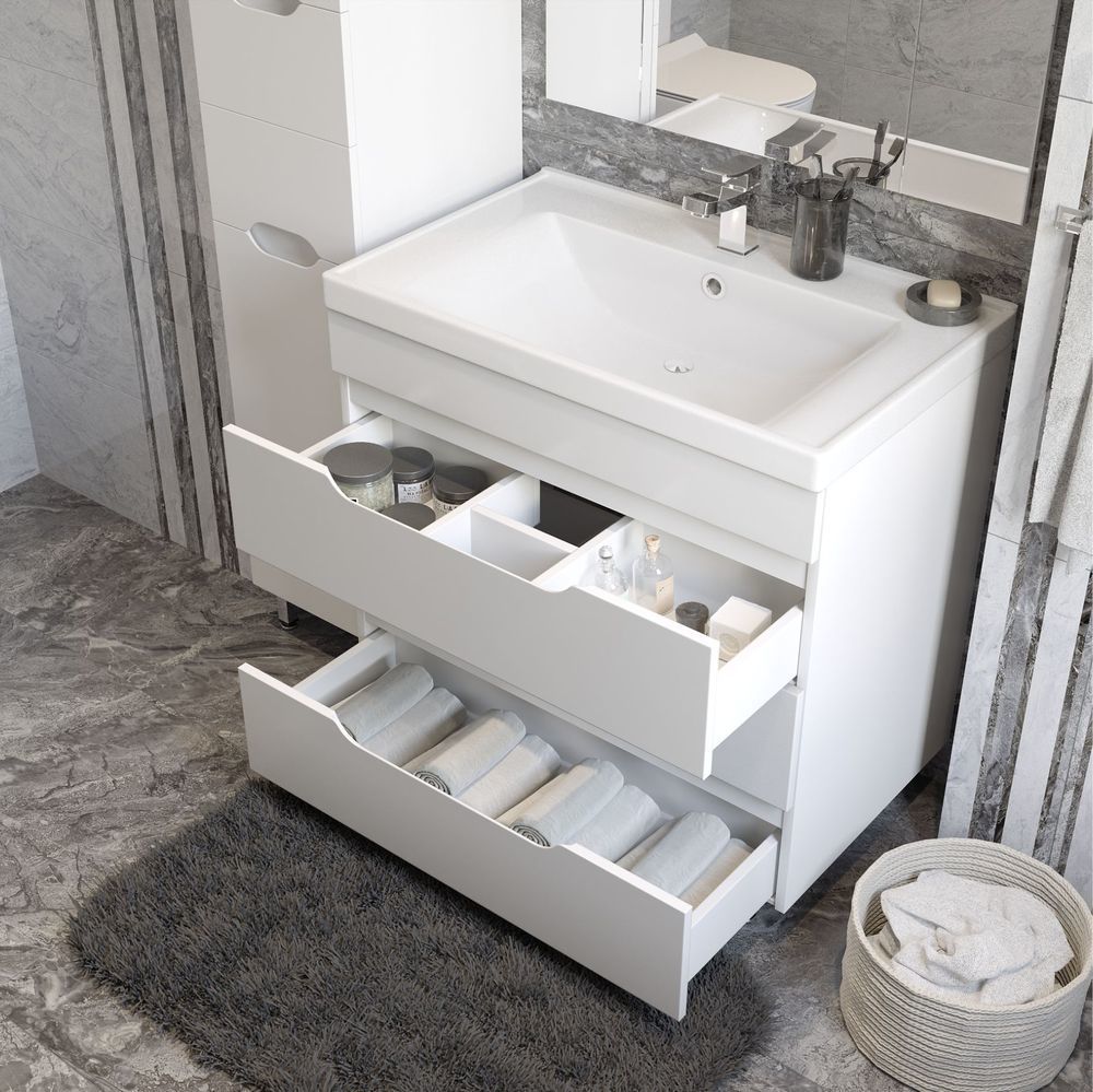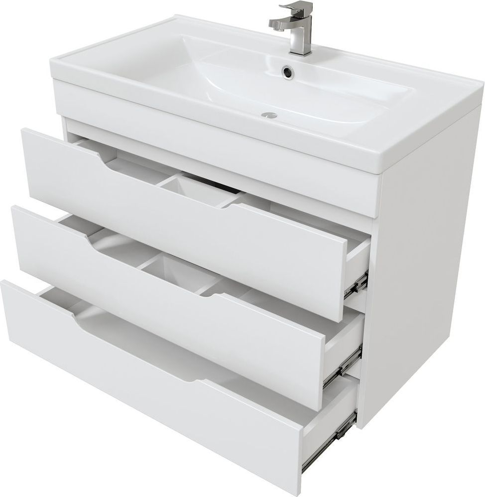 Тумба напольная Mirsant Soho quadro 90 см c раковиной Deep 90, цвет белый.