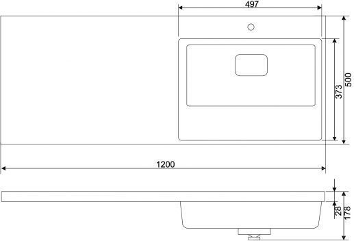 Тумба напольная с раковиной-столешницей Mirsant Next 120 см R (раковина Fly2) белый