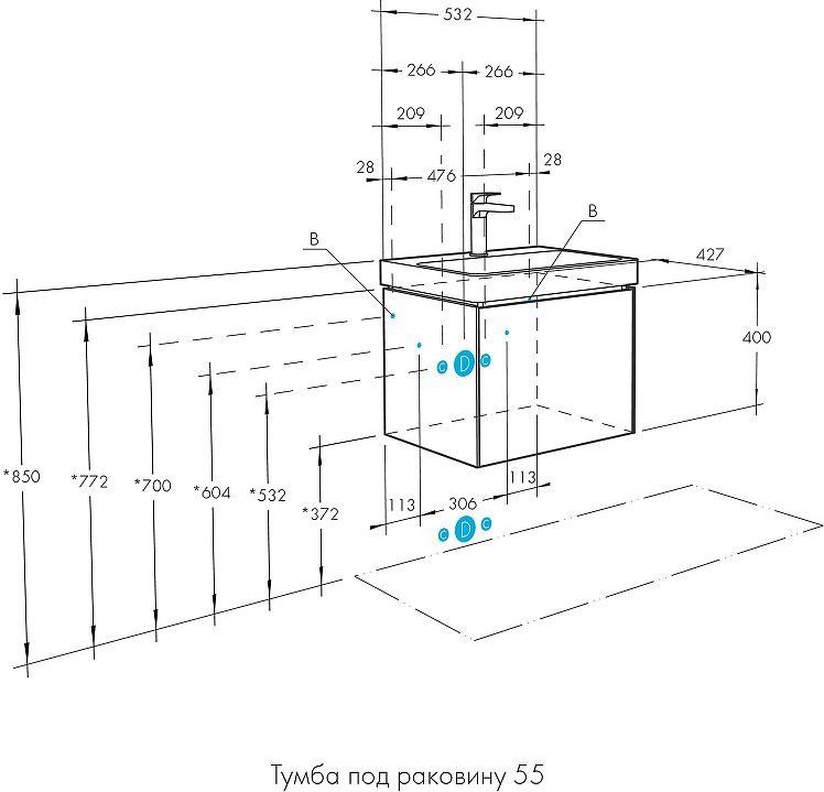 Характеристики тумба с раковиной Акватон (1A263101AX2B0+1WH501620)