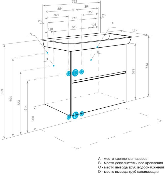 Характеристики тумба с раковиной Акватон (1A283001SD010+1WH501772)