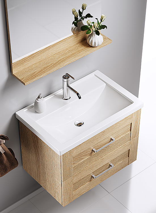 Тумба подвесная с раковиной Aqwella Фостер 70 см FOS01072DS, дуб сонома