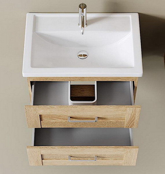 Тумба подвесная Aqwella Фостер 70 см с раковиной Фостер 70 см, с двумя ящиками, цвет дуб сонома.