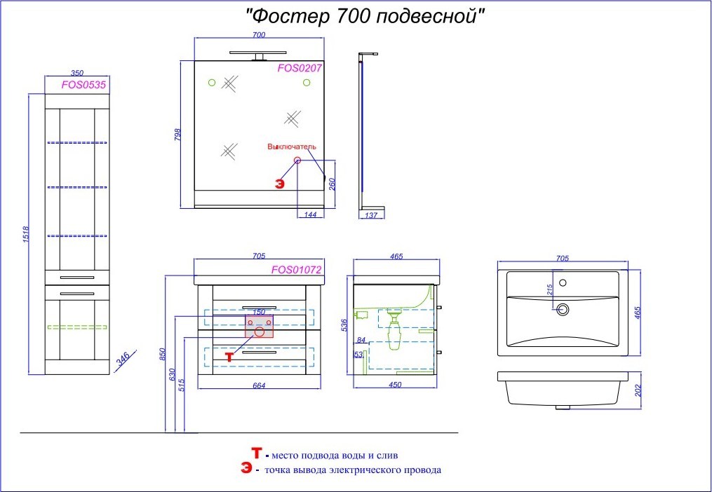 Характеристики тумба с раковиной Aqwella (FOS01072DS)