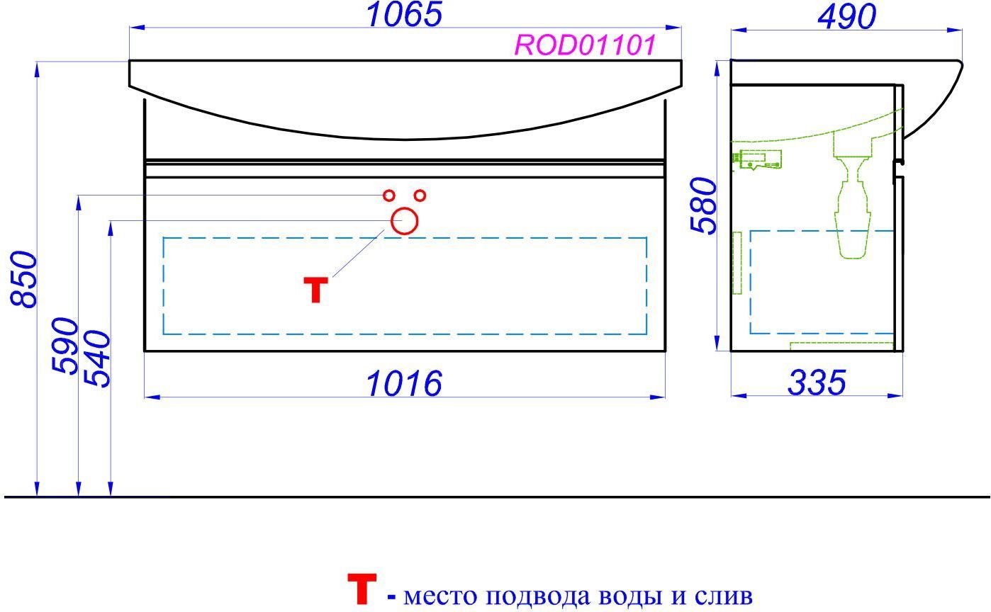 Характеристики тумба с раковиной Aqwella (ROD01101)