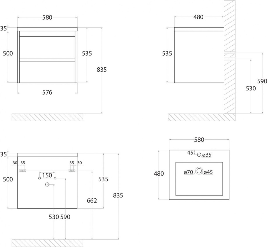 Характеристики тумба с раковиной Art&Max (Family-580-2C-SO-BL+AM-LAV-580-MR-A)