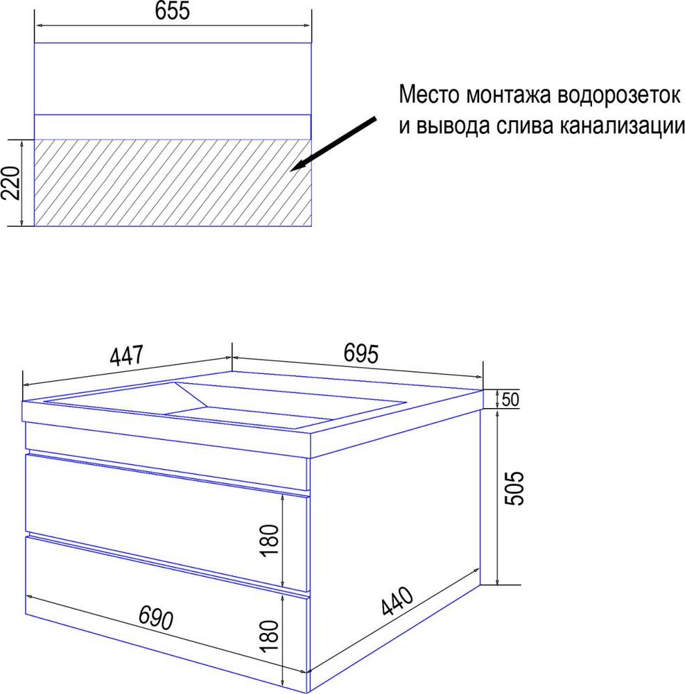 Тумба подвесная с раковиной Azario Эстима 70/2 70 см CS00094583