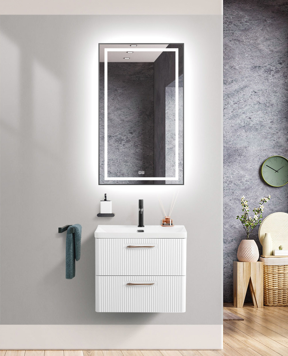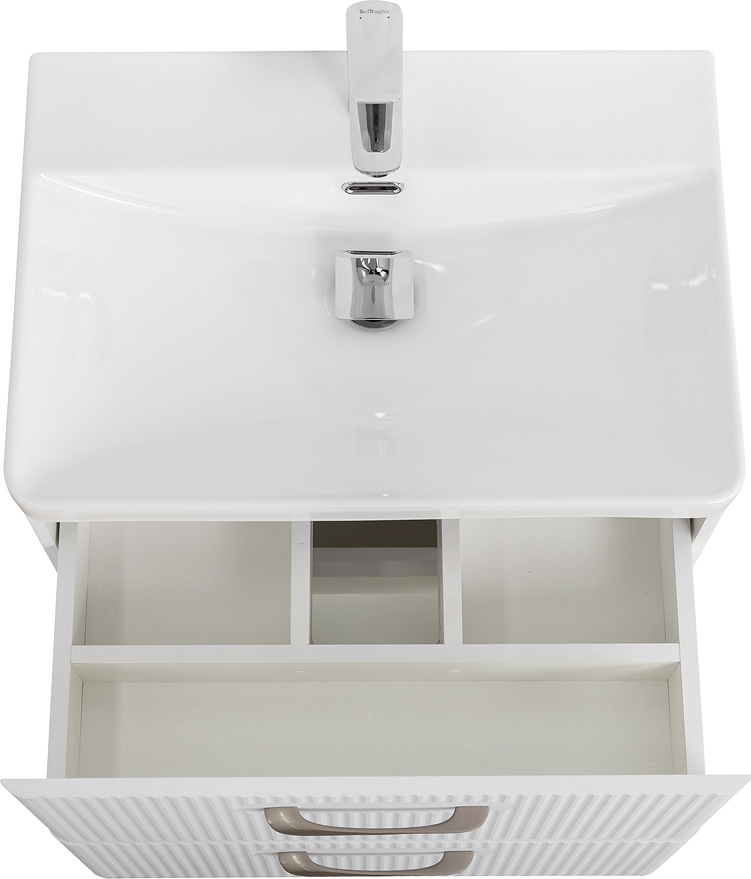 Тумба подвесная с раковиной BelBagno DUE-500-2C-SO-BM-P 50 см (2 ручки сатин) белый металлик